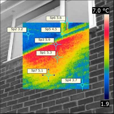 The section now begins with the Endoscope Random Images. The endoscope survey was not originally planned. The idea developed through necessity and subsequently proved to be hugely successful in not only identifying voids but providing indisputable proof as well. You cannot argue with those images and movie clips. In my work historically, we learn to employ such novel thinking when exploring options. The thermographic survey does provide additional valuable information on the incompetence of the work carried out. It highlights other areas where ordinarily an intrusive survey would be best employed. Areas where the endoscope could not reach or would result in internal damage. That said it is already self-evident that the work will have to be redone, therefore it is pointless adding the expense of an external intrusive boroscope survey based on the thermographic images. The thermographic survey was carried out by a Level One Thermographer using a FliR B50 camera. The work was carried out 21.02.2013. All the specified prior-to-survey conditions were fully complied with. I was supplied with images and using relevant downloaded FLiR software I have produced all that you will see in these two pages. The software determines the correct temperature data indicated in the text boxes next to the 'spots' indicated, as well as the right hand side temperature bar. Outdoor temperature on the day 3 degrees and for those interested, the emissivity setting 0.92. All views reported from outside. |